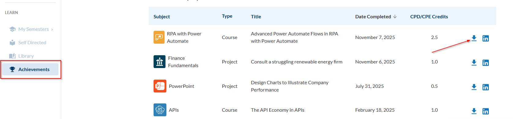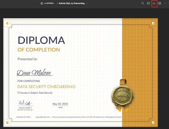 This icon will allow you to download the diploma or certificate to your device.